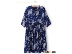 Blue Half Sleeve Tight High Waist Pleated Dress