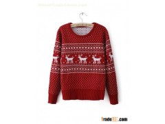 Red Long Sleeve Round Neck Fawn Pullover Sweater