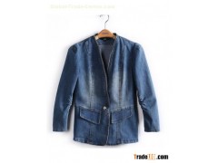 Blue Nine Point Puff Sleeve Draped Denim Jacket